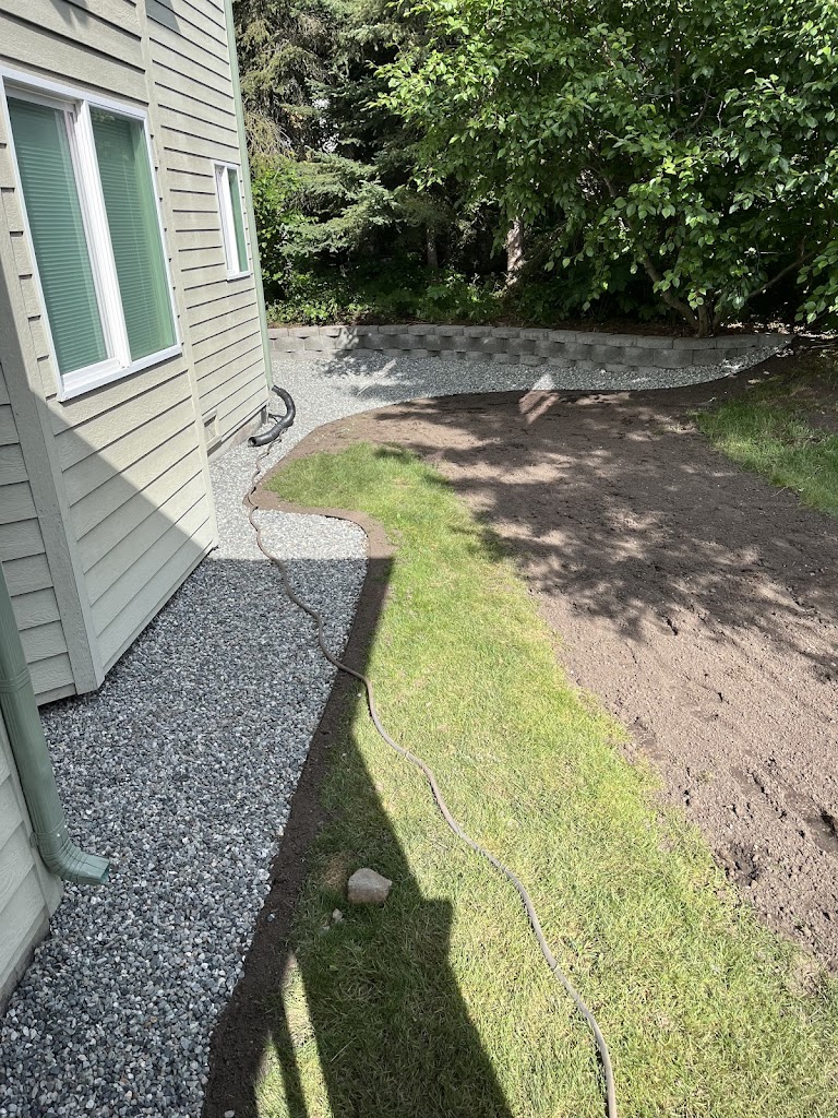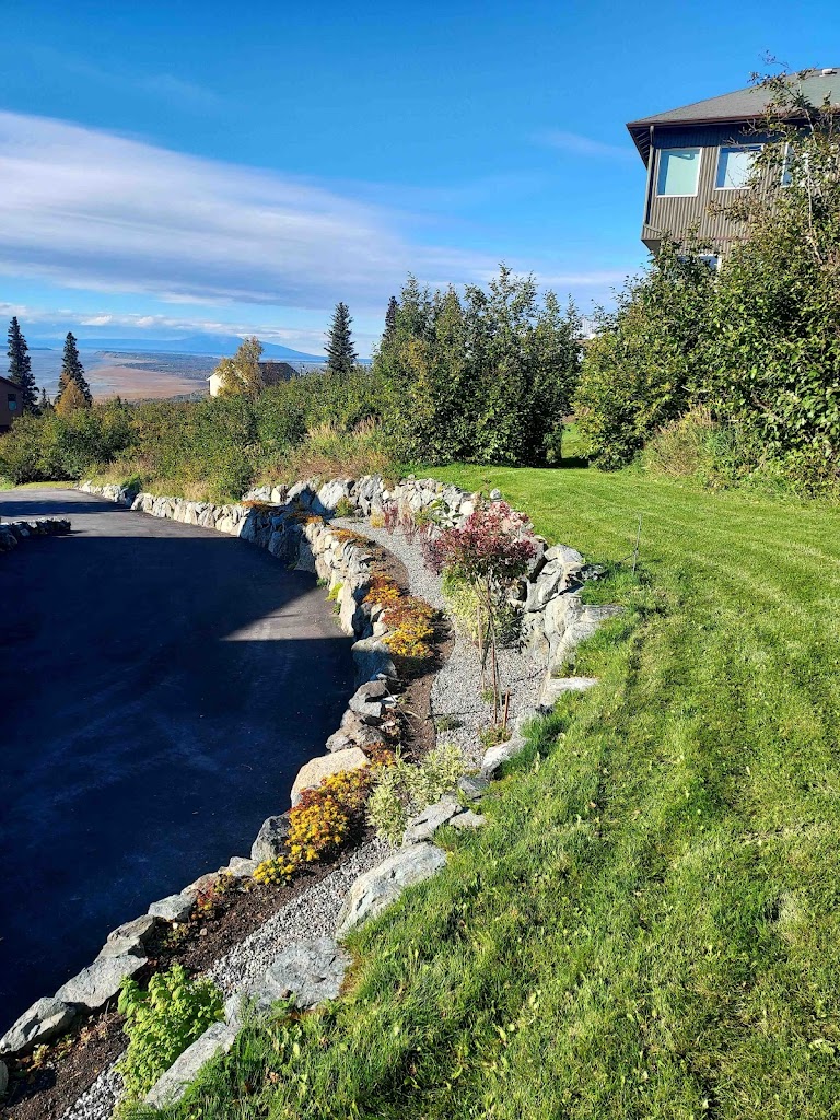 Alex Grant and Titan were great to work with. We had them do the following: clear a few areas of Willow/Alder/Weeds, level the areas, and put down topsoil & hydroseed; plant a number of flowering bushes and trees; extend a rock retaining wall & add a 2nd tier of retaining wall; ring several trees & septic standpipes (which we cut down to camouflage) and put down landscape fabric & river rock; also extended aluminum edging/landscape fabric/river rock around the rest of the house. Alex was great to work with, and the crew were hard working and did a great job. We're very happy with how everything turned out.