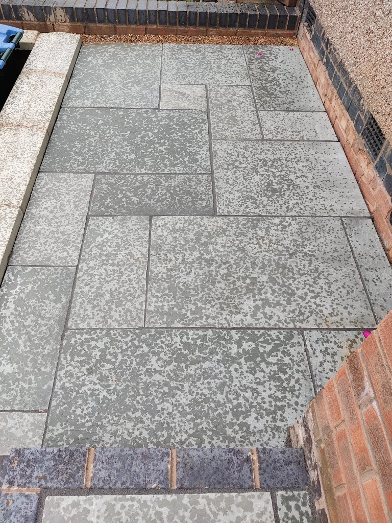 D&M laid a new patio and relaid old slabs on my rear garden. Then turned an awkward front garden slope into smart steps with a central handrail for safety, allowing flat areas for plant containers. A good crowd of workers who cleared up completely after they had finished the work. . A.Tomlin