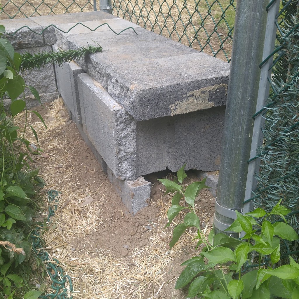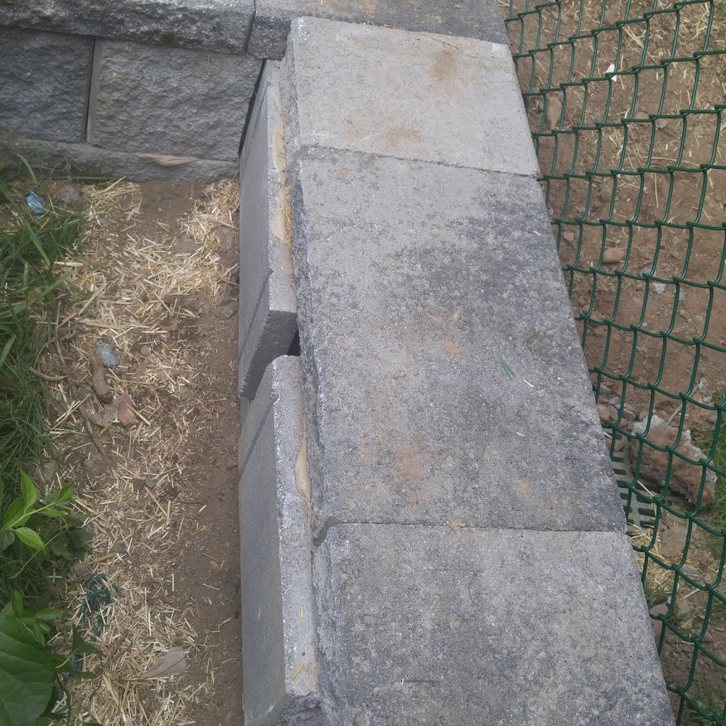 This is the retaining wall they put up neighboring my property. Unfinished, with large gaps, broken pieces. Not safe for my kids and an eyesore. Despicable.